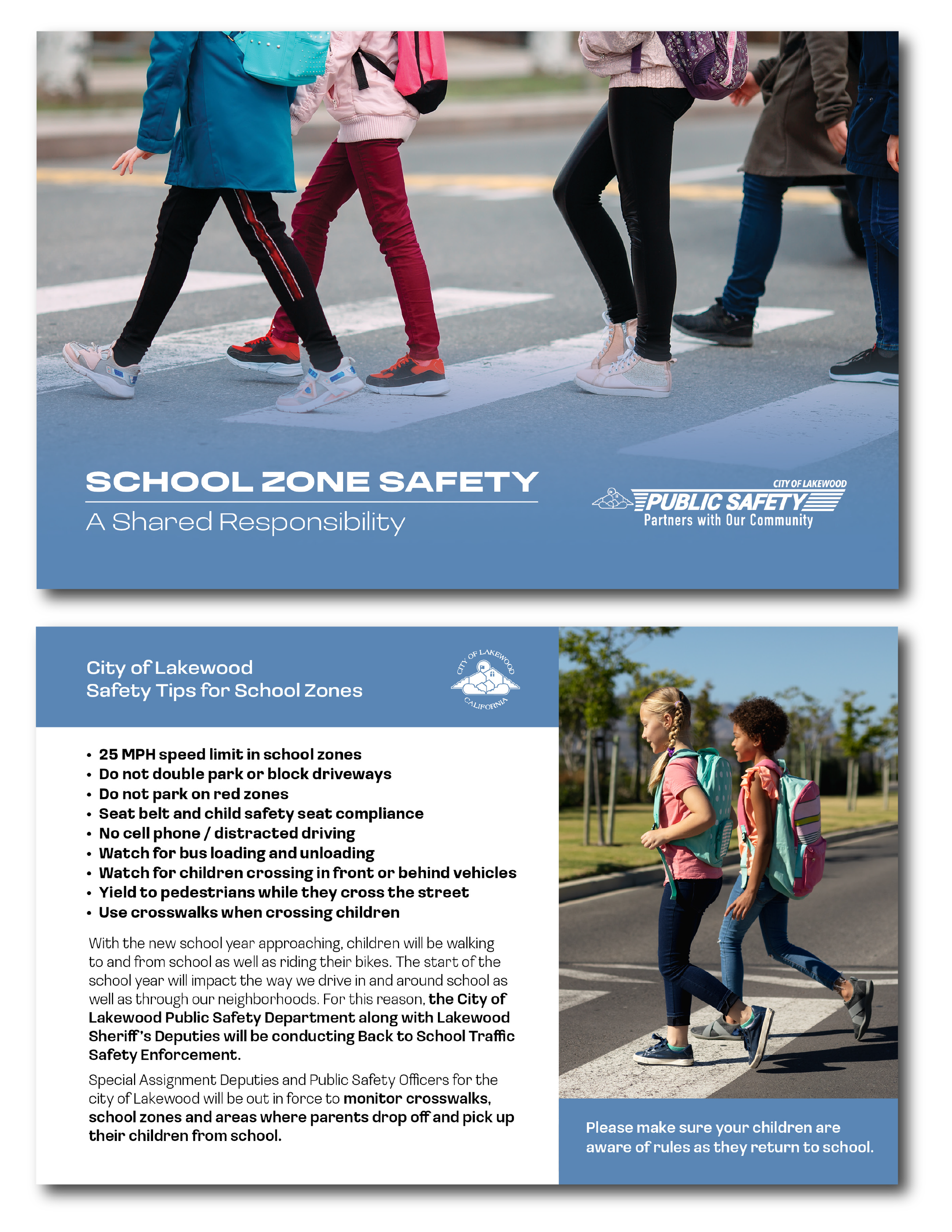Back-to-School traffic safety awareness campaign designed to promote responsible driving behaviors in and around school zones. The initiative includes a double-sided informational flyer and coordinated social media graphics targeting parents, students, and drivers. The campaign is meant to support proactive education, risk reduction, and safer neighborhood mobility year round, but specially during the academic year.